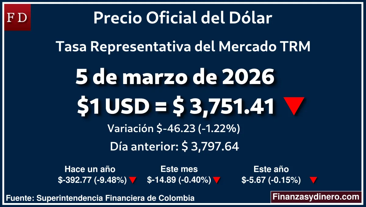 Dólar en Colombia hoy 4 de marzo 2026: TRM a $3,797.64