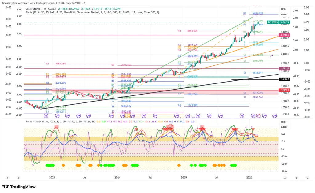 Cierra una semana de perdidas y marca un nuevo mínimo para 2026. Permanece por debajo de la línea de cuello del patrón HCH que se ha mencionado en otras ocasiones. El objetivo del patrón HCH es $4.4732. Soporte inmediato en la zona $4.99-$5.06.