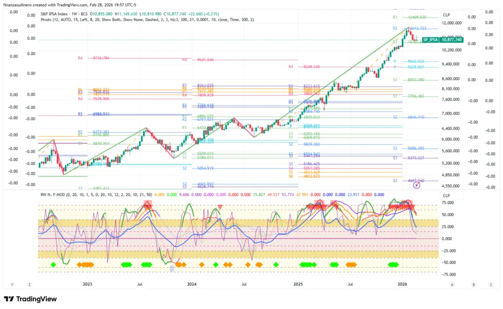 Chile (IPSA): Cierre de ganancias cerca del soporte de 10,702. Se está resolviendo una divergencia negativa, lo que indica alta probabilidad de corrección a la baja.