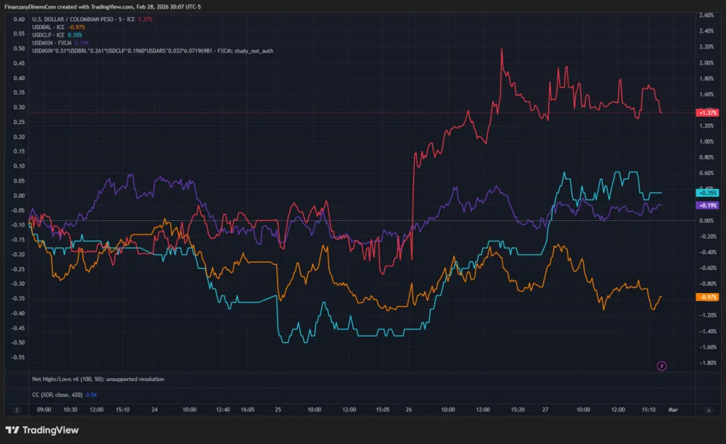 En América Latina, la depreciación del peso colombiano se roba las miradas, presionado por las inminentes elecciones legislativas del 8 de marzo y el conflicto comercial con Ecuador, mientras otras divisas de la región muestran señales técnicas de sobreventa extrema. A nivel internacional, el estallido de la esperada guerra en Medio Oriente ha disparado la volatilidad de activos estratégicos como el Petróleo Brent y el Oro, amenazando con fuertes sacudidas en los índices bursátiles de Wall Street. En el siguiente informe detallamos la acción del precio y las proyecciones fundamentales para los principales activos del mercado.
