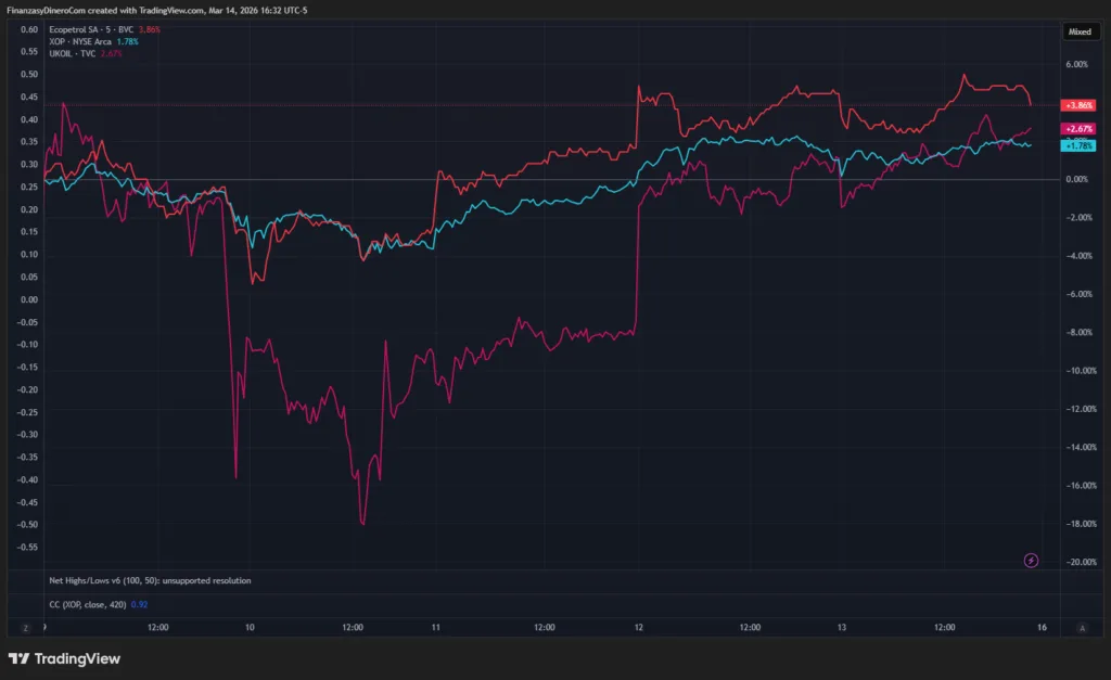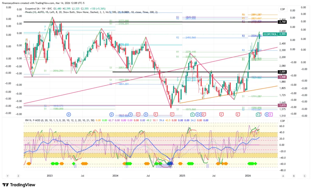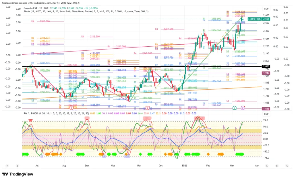 Ecopetrol refleja esta dinámica con claridad. La estatal petrolera alcanzó sus mejores niveles desde diciembre de 2024, superando la resistencia de $2.526. La correlación de 0,73 con el crudo de referencia subraya que, mientras el suministro global permanezca amenazado, el flujo de divisas por exportaciones minero-energéticas proporcionará un piso sólido al peso frente a sus pares regionales.