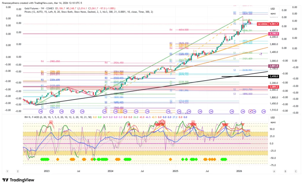 Cierra una semana de fuertes ganancias y alcanza su mejor nivel desde diciembre de 2024. Supera la resistencia dada por el nivel R2 $2,526 y tiene el camino libre para alcanzar los $2,760.