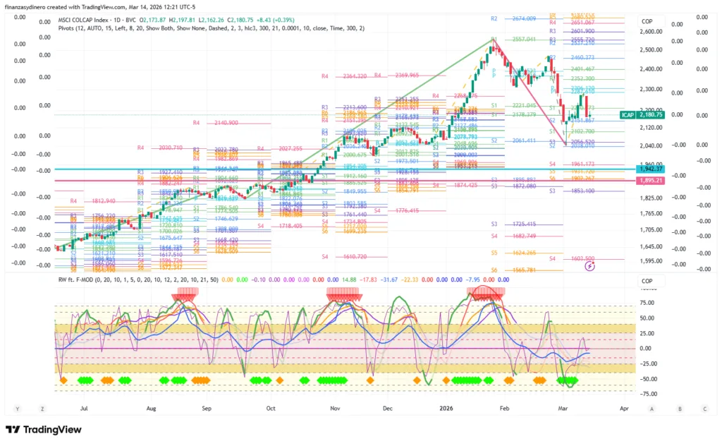La lectura de los resultados en las elecciones legislativas y consultas presidenciales aporta una capa de estabilidad relativa. Aunque el nuevo Congreso presenta una mayor representación de sectores de izquierda, la división de fuerzas sugiere un equilibrio de poderes que limita cambios estructurales radicales. La percepción del mercado apunta hacia una candidatura de centro-derecha fortalecida, lo que anticipa una transición hacia un ejecutivo de derecha. Este escenario político ha mitigado la prima de riesgo país, permitiendo que el MSCI COLCAP se mantenga cerca del soporte de los 2.141 puntos.