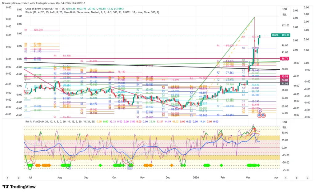El Brent cierra una semana de fuertes ganancias gracias al recrudecimiento de la Tercera Guerra del Golfo lo cual ha puesto en peligro todo el sector petrolero, energético e incluso manufacturero de la región y de paso la estabilidad energética de sus clientes en Asia y Europa.