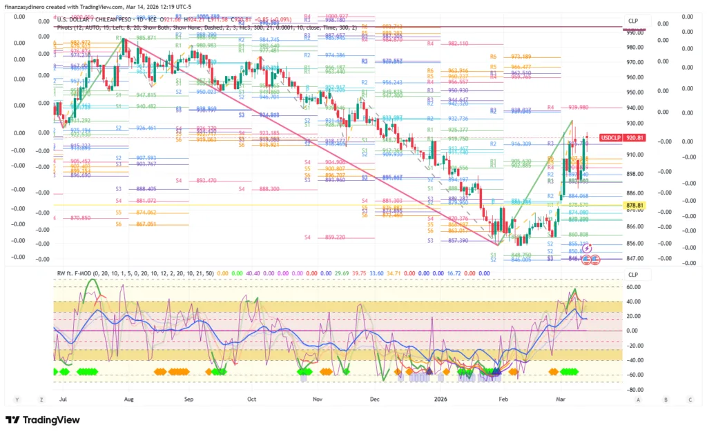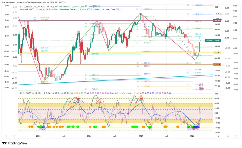 El dólar encuentra resistencia en la zona de pivotes anuales $933.59-$943.41. La vela mensual de febrero señala indecisión y un cambio de tendencia.