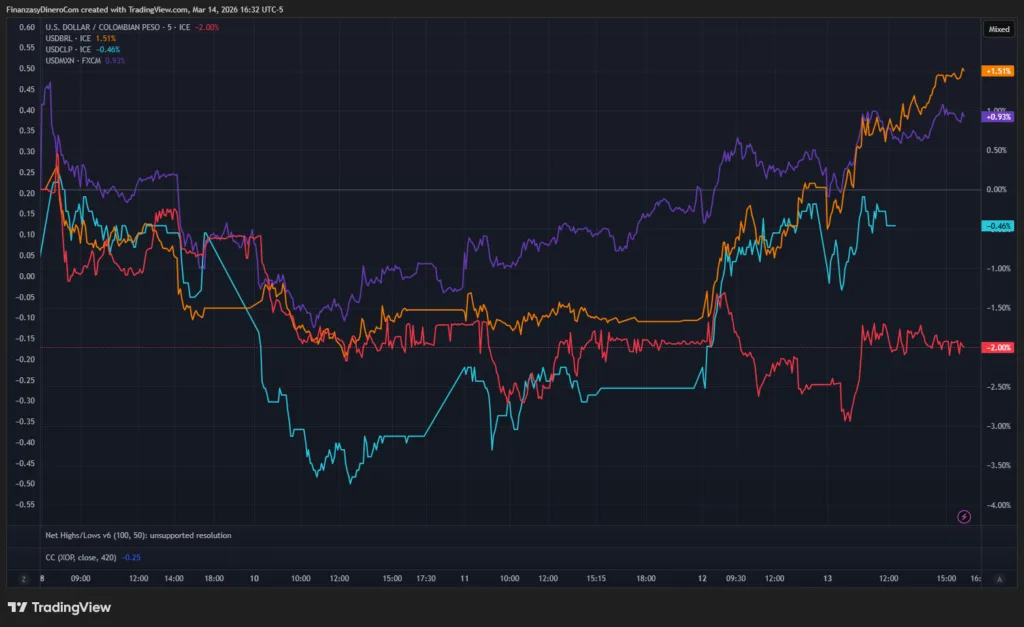 La intensificación del conflicto en Medio Oriente ha disparado la volatilidad en los mercados globales, llevando al petróleo Brent por encima de los $121 y fortaleciendo al dólar estadounidense (DXY). Mientras el peso colombiano se posiciona como la divisa más fuerte de la región, Chile y México enfrentan una presión renovada por la caída del cobre y la aversión al riesgo en Wall Street.