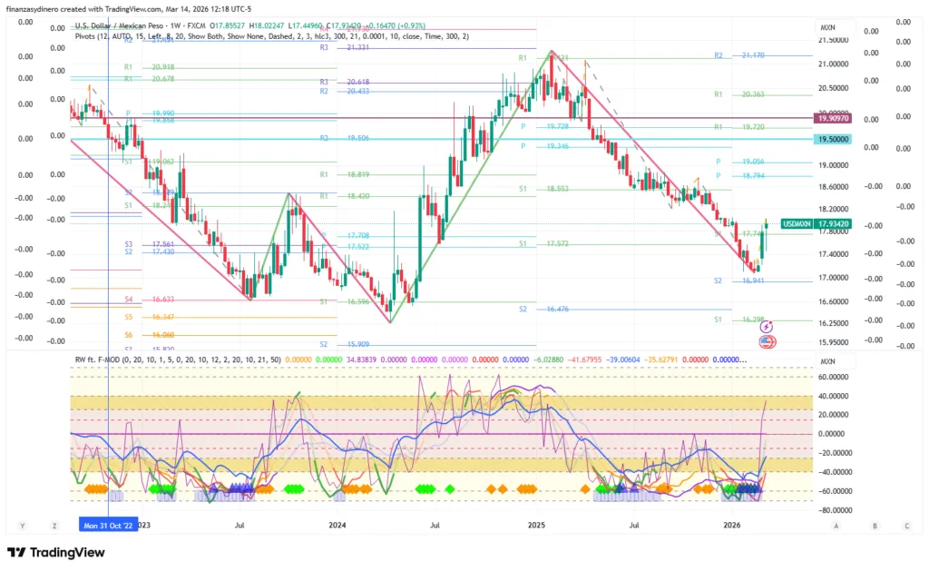 A nivel semanal permanece en sobreventa y esta fortaleciendo la divergencia positiva que se ha venido formando desde junio de 2025. Sesgo bajista.