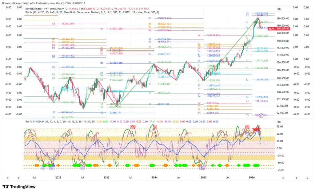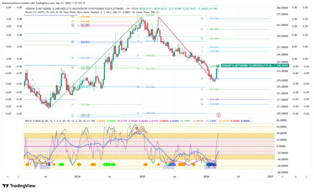 A nivel semanal comienza a corregir sobreventa y esta fortaleciendo la divergencia positiva que se ha venido formando desde junio de 2025. Sesgo bajista.