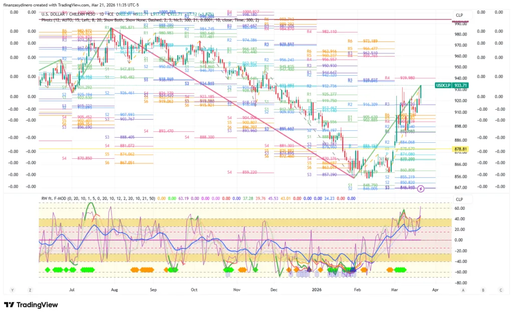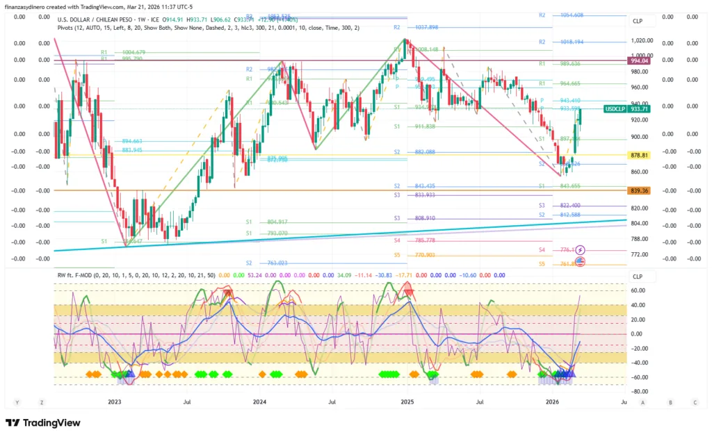 Cierra una semana de fuertes ganancias y alta volatilidad. El dólar encuentra resistencia en la zona de pivotes anuales $933.59-$943.41. La vela mensual de febrero señala indecisión y un cambio de tendencia.