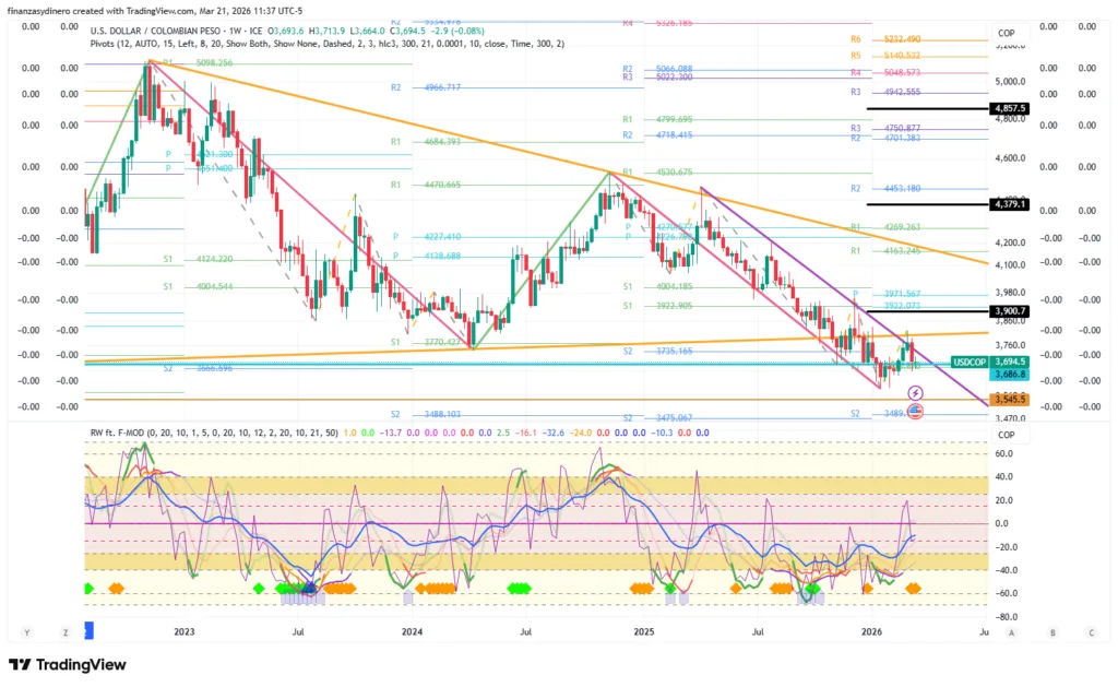 USD/COP a nivel semanal.