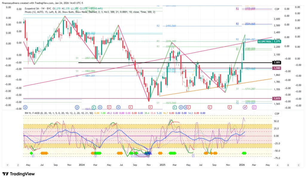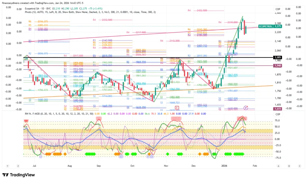 - Ecopetrol: Alta correlación con el Brent, señal de indecisión en resistencia estructural de largo plazo.