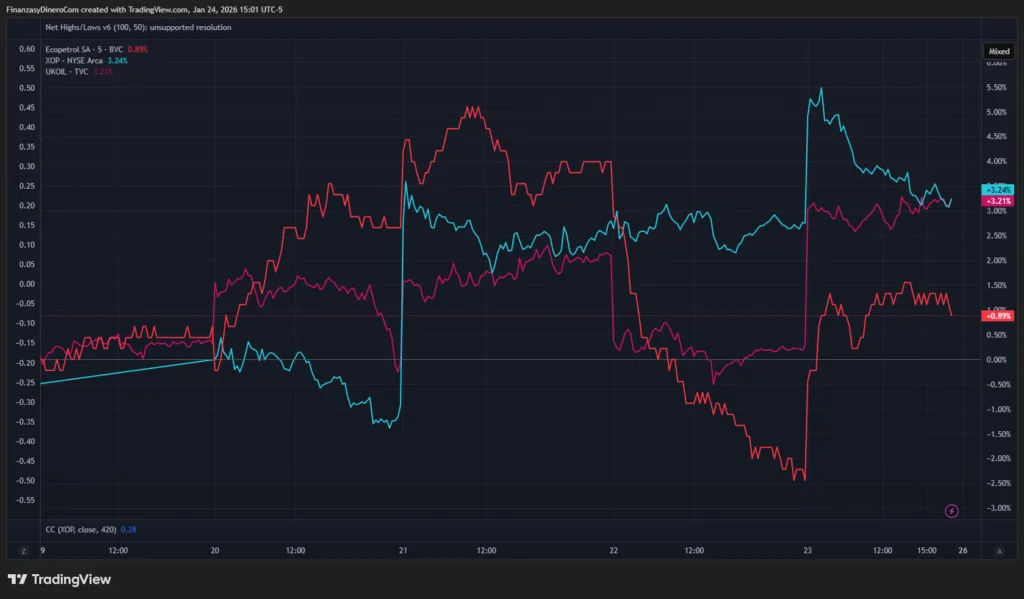El movimiento de la semana estuvo acorde con el comportamiento del petróleo Brent, con una correlación de 0.57 y del fondo XOP (SPDR S&P Oil & Gas Exploration & Production) con una correlación de 0.28.