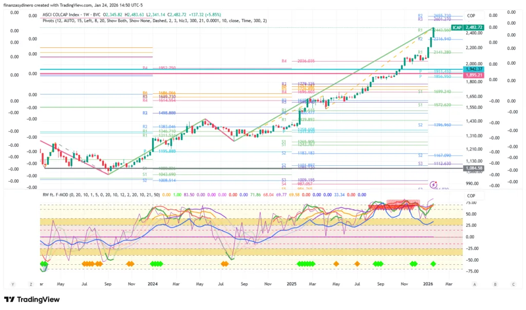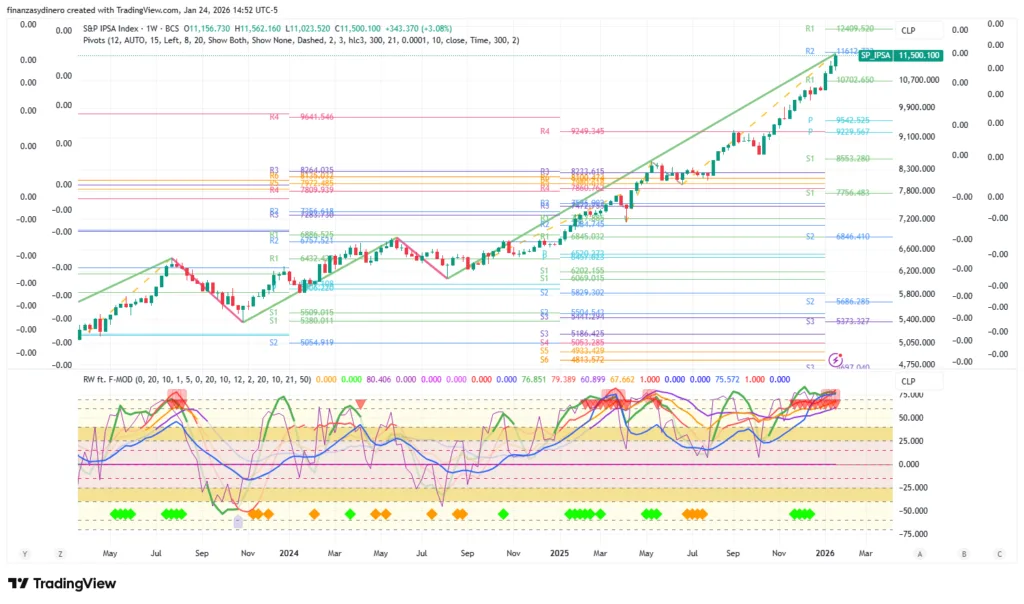 - Latinoamérica: México, Brasil, Chile y Colombia marcan máximos históricos con sobrecompra extrema y divergencias negativas crecientes.