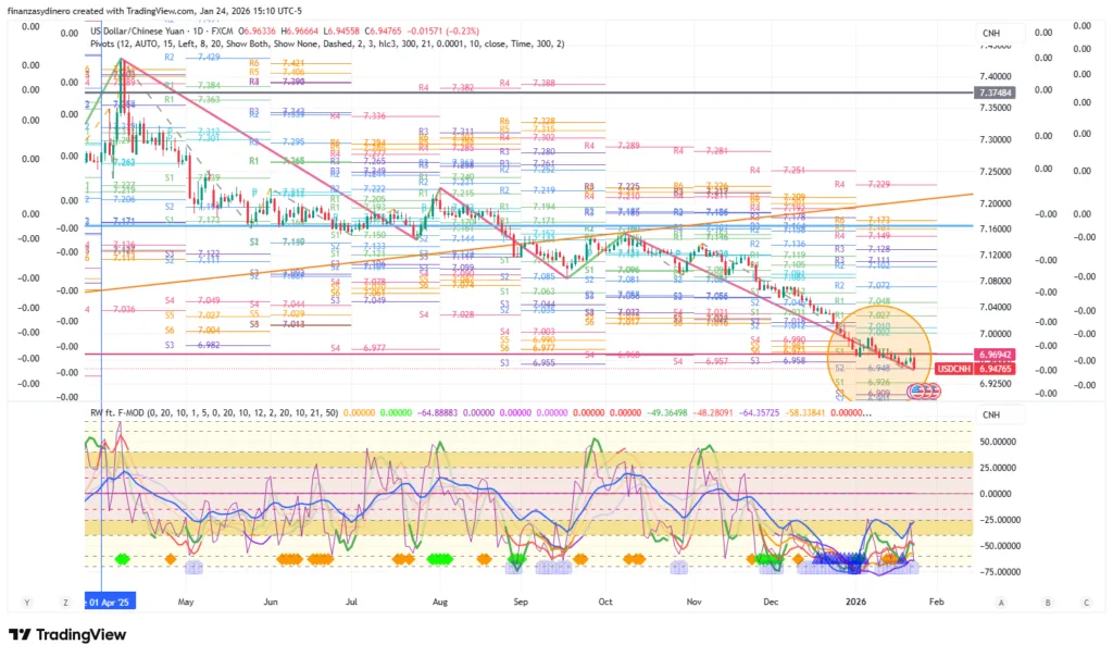 - China (USD/CNH): Nivel técnico crítico en 6.978; sobreventa profunda sugiere corrección alcista de corto plazo.