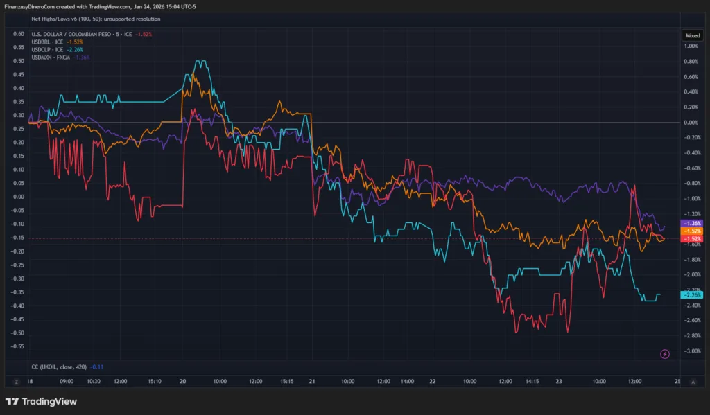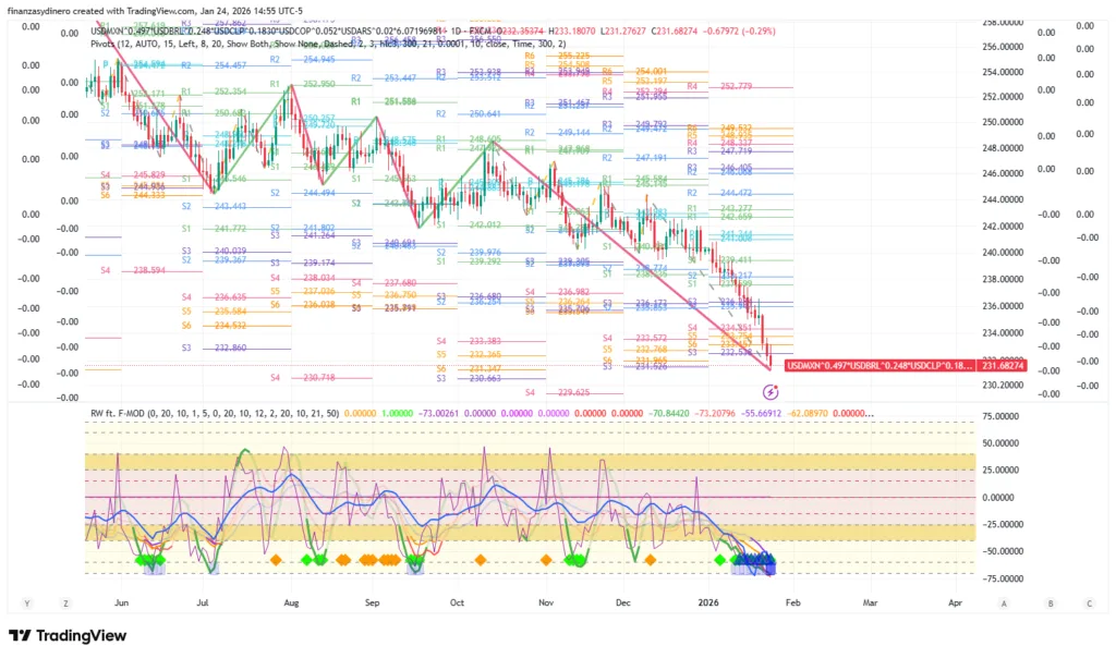 Las divisas de Latinoamérica extienden su fortaleza frente al dólar en un entorno de sobreventa extrema, mientras el DXY comienza a construir una base estructural. En paralelo, el oro marca máximos históricos con señales de agotamiento, el petróleo se ve impulsado por riesgos geopolíticos y las bolsas globales operan en niveles de sobrecompra con crecientes divergencias negativas.