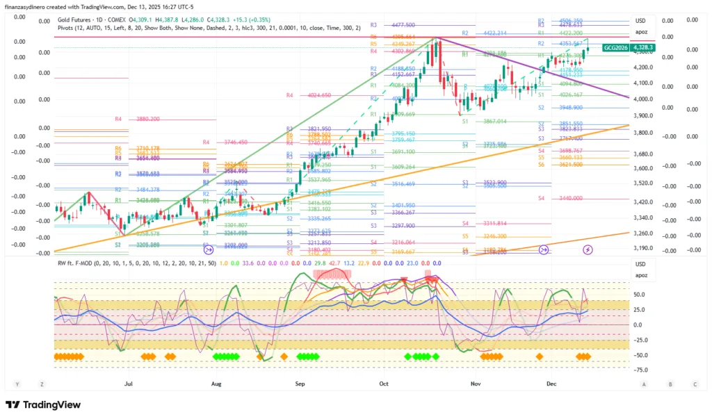 Los mercados globales, por su parte, reflejan incertidumbre en commodities como el oro —cerca de máximos históricos— y el petróleo Brent bajo presión por expectativas de sobreoferta en 2026.