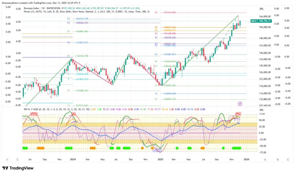 Cierra una semana de ganancias y permanece cerca del ATH. La zona de pivotes 151,438-155,872 es soporte importante.