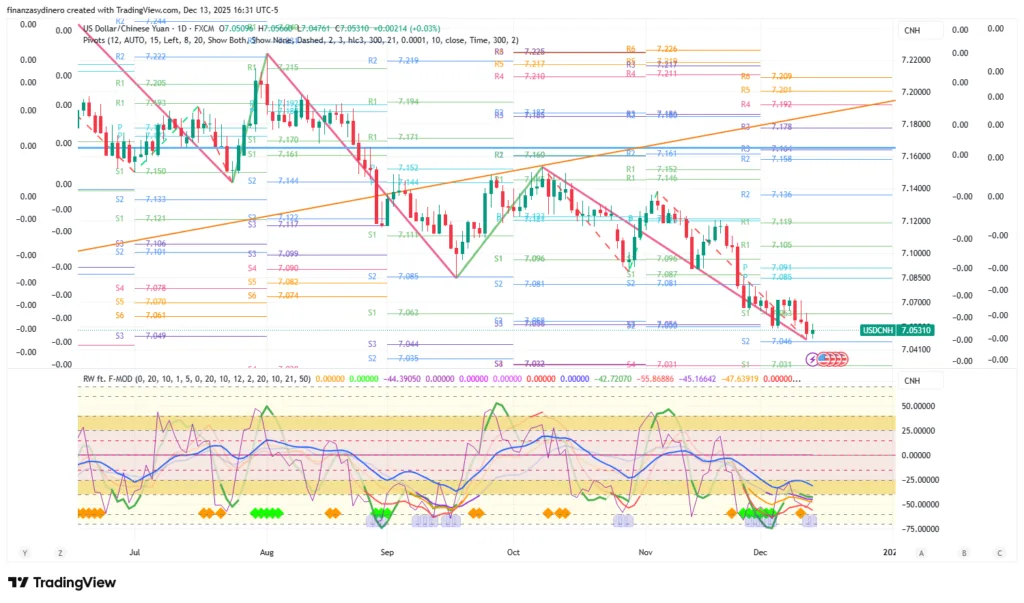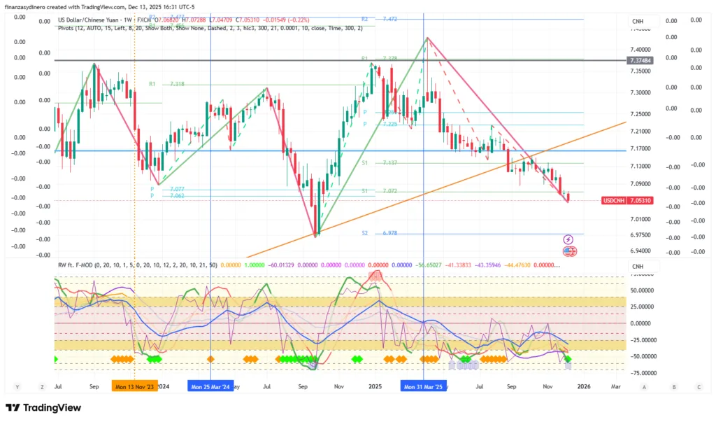 Cierra la semana con perdidas y permanece por debajo del soporte 7.072 (nivel S1). Objetivo alcista 7.17 y a la baja 6.978.