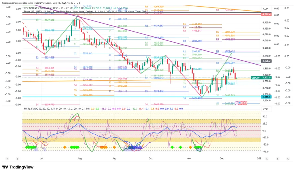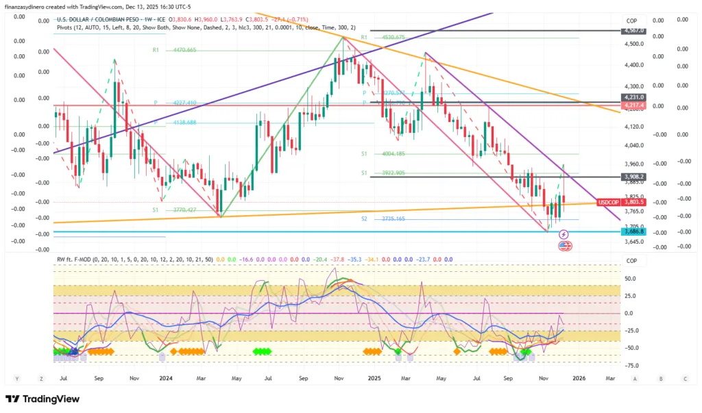 El mercado cambiario colombiano cerró una semana de pérdidas con el USD/COP aproximándose a niveles críticos de soporte. Mientras el peso colombiano se posiciona como una de las divisas latinoamericanas más fuertes en el período, el análisis técnico revela condiciones de sobreventa que podrían impulsar un rebote técnico.