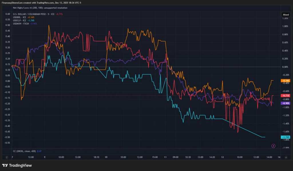 En el contexto regional, las principales monedas de América Latina muestran comportamientos divergentes, con el peso chileno fortaleciéndose tras resultados electorales, mientras el peso mexicano y el real brasileño enfrentan presiones bajistas.