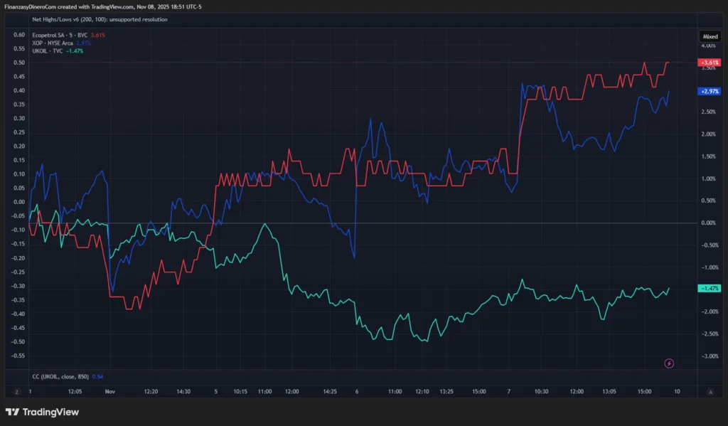 Acción de Ecopetrol versus XOP y UKOIL últimos cinco días
