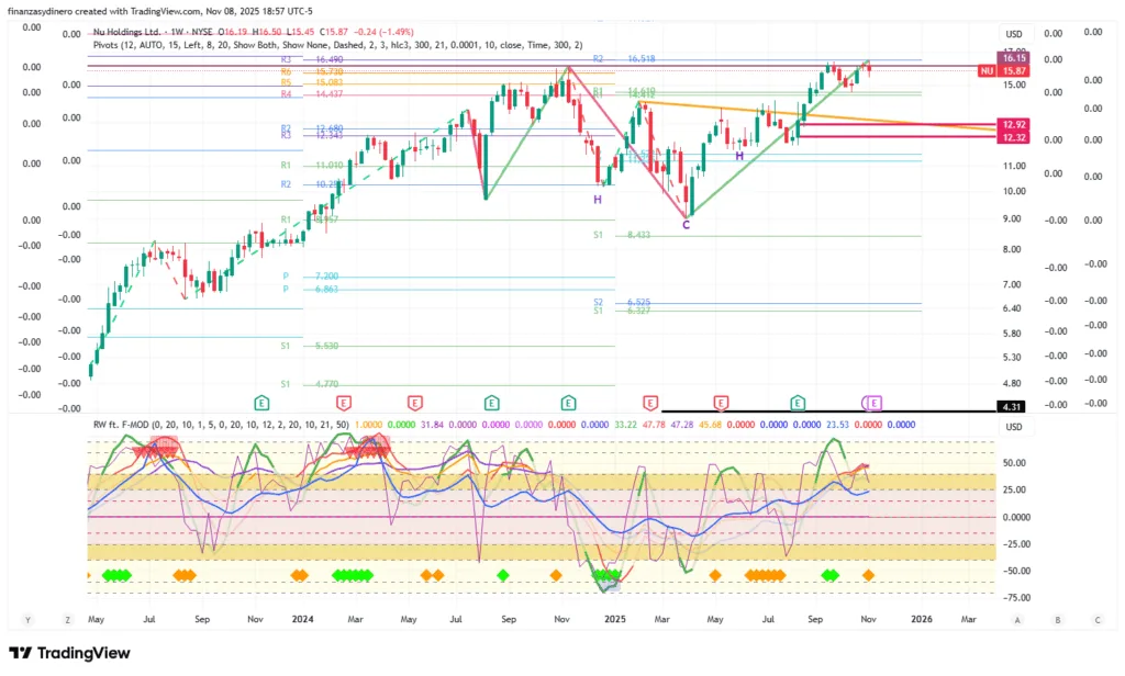 Cierra una semana de perdidas y marca un nuevo ATH. Se enfrenta a la resistencia $16.51. Soporte importante en la zona $14.43/$13.60.