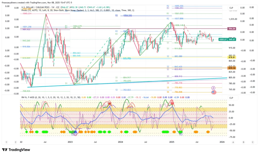 Cierra la semana con ganancias y permanece por debajo de la zona $959-$969. Objetivo al alza $1,022; a la baja $914.