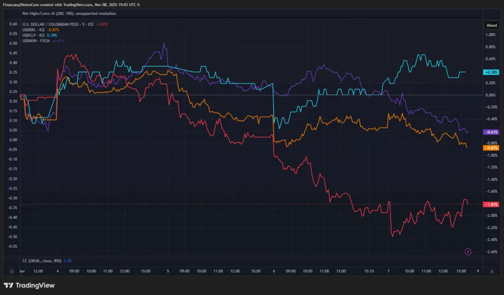 • Peso colombiano lidera ganancias en Latinoamérica mientras mercados globales corrigen sobrecompra – Semana 45 de 2025