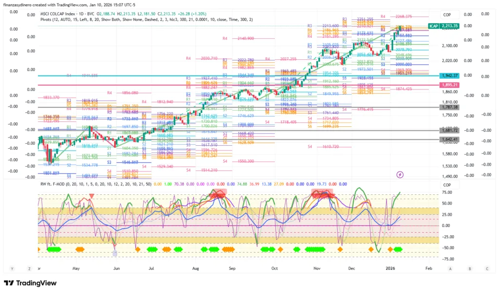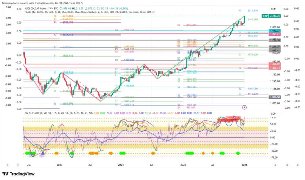 El peso colombiano registra el mejor desempeño regional frente al dólar, mientras los mercados globales muestran divergencias técnicas, sobrecompra en activos de riesgo y señales tempranas de cambio de tendencia en divisas, commodities e índices bursátiles.