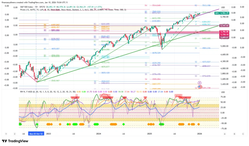 Cierra una semana de ganancias y marca un nuevo ATH. Objetivo bajista 6,147; al alza 6,972.