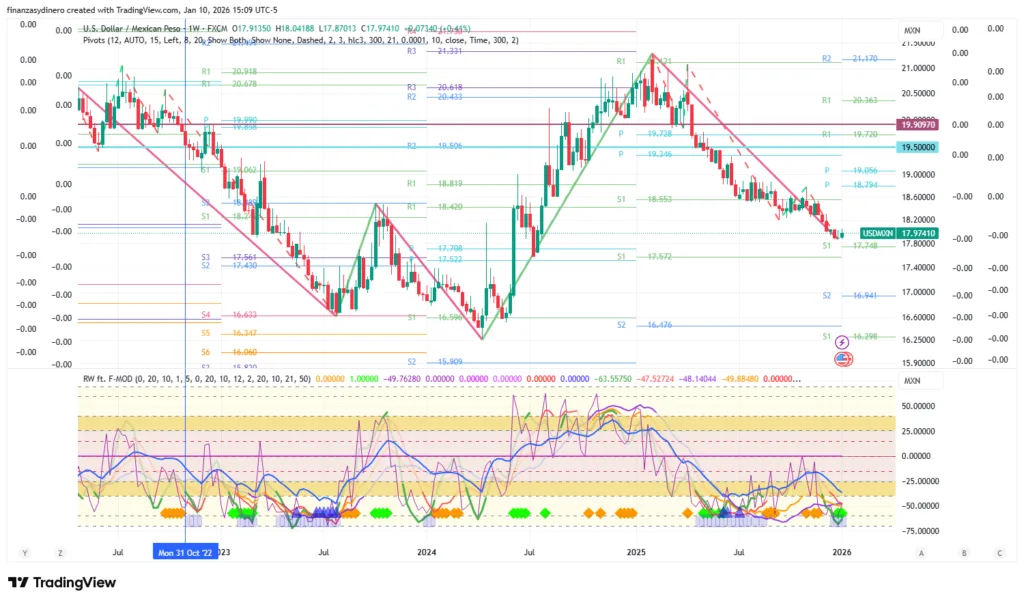 Cierra una semana de ganancias y tiene el camino libre a los $17.57. La tasa de cambio tiene como objetivo inicial los $17.83.